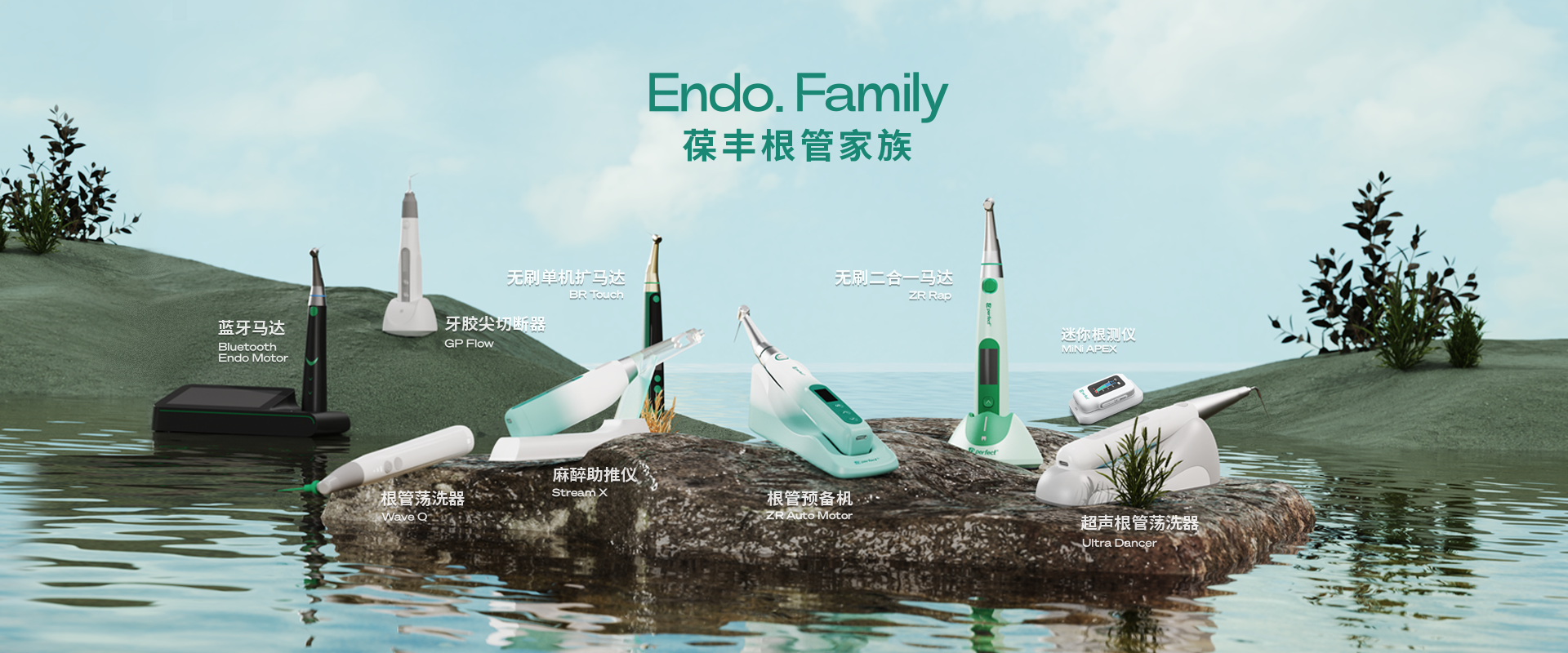 電子產(chǎn)品:根管預(yù)備機(jī);根管測(cè)量?jī)x;根管蕩洗器;熱熔牙膠充填系統(tǒng);無線便攜式麻醉儀;生物陶瓷治療輔助工具。